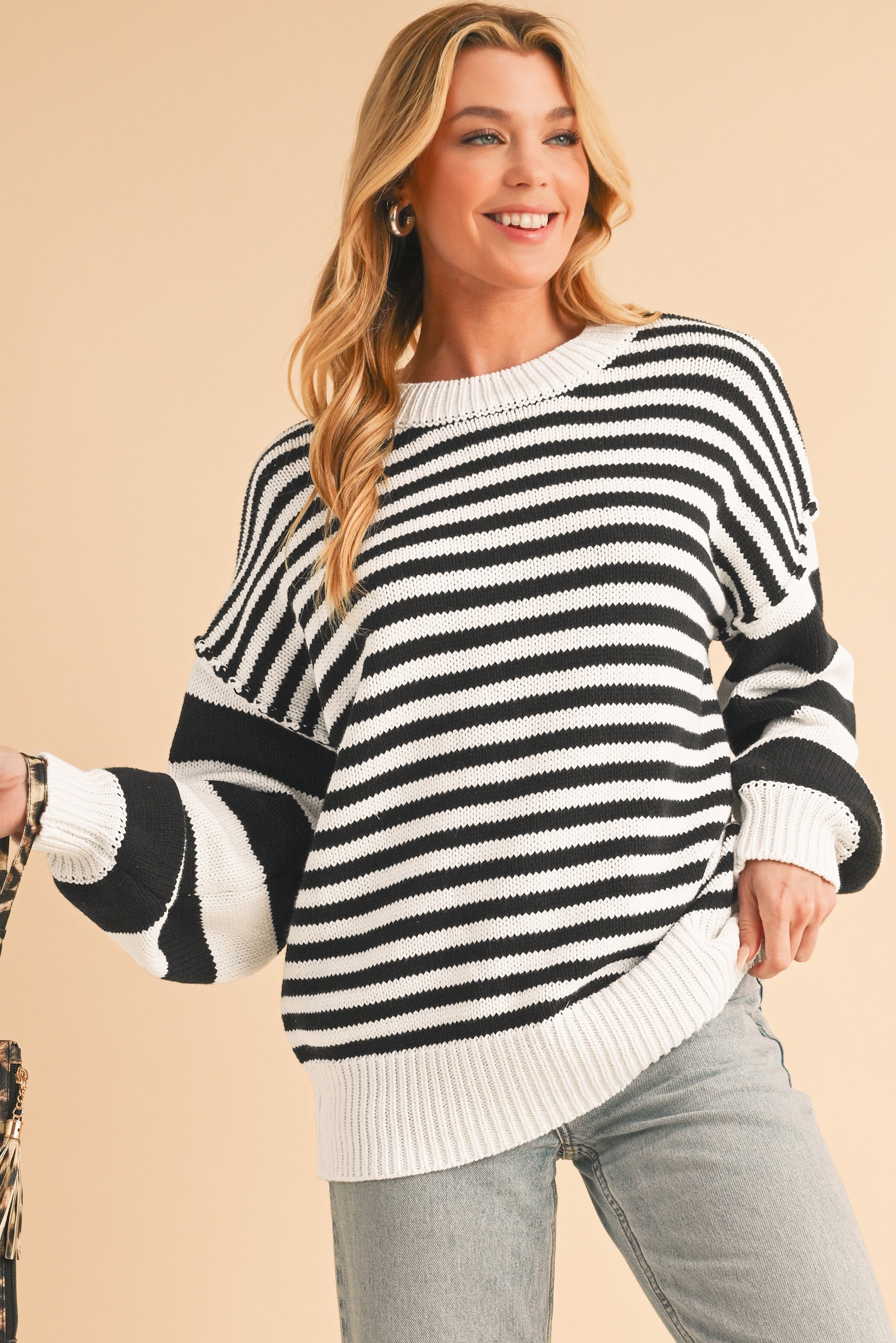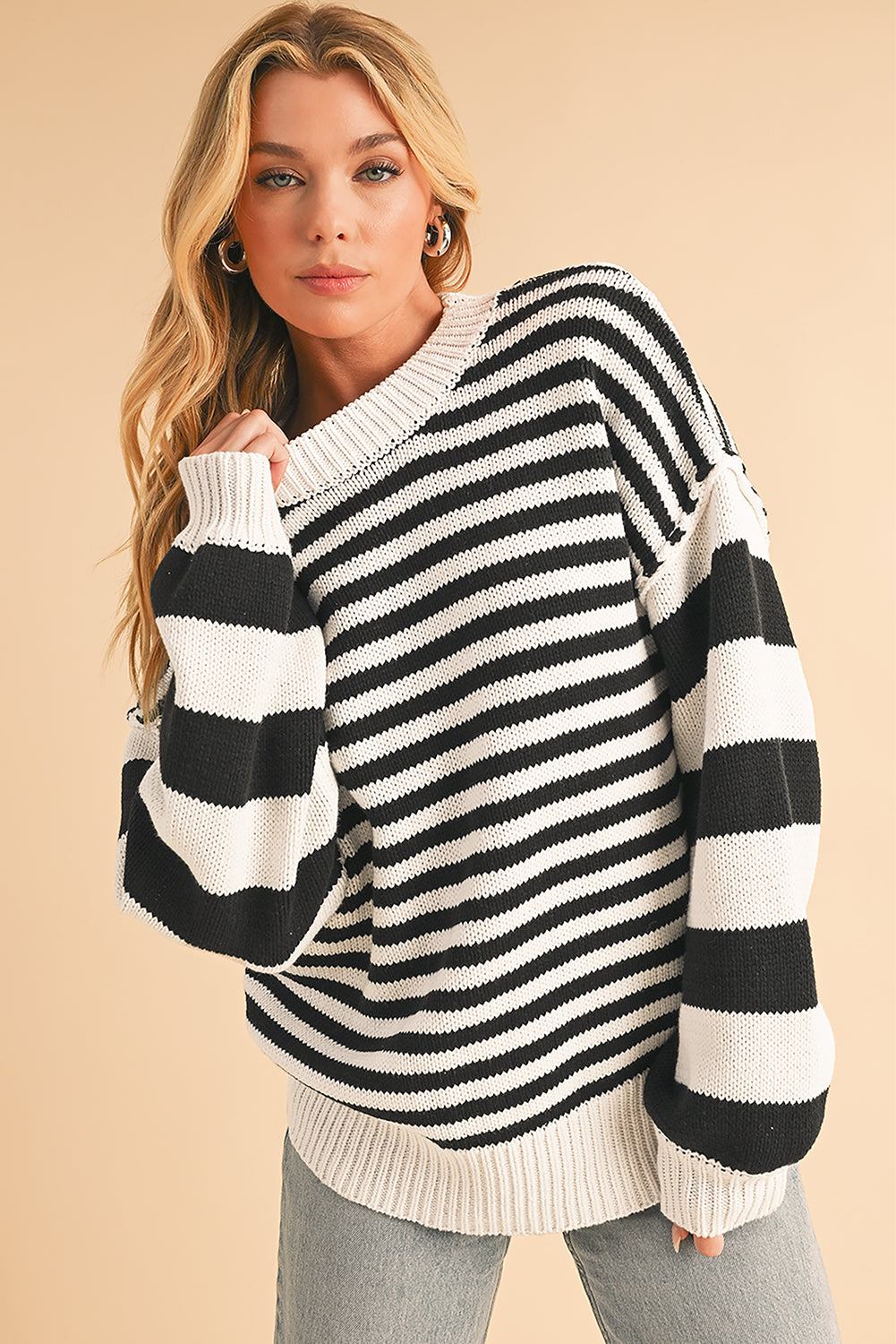 • With its black and white striped pattern, this sweater is easy to mix and match with various bottoms for different looks.