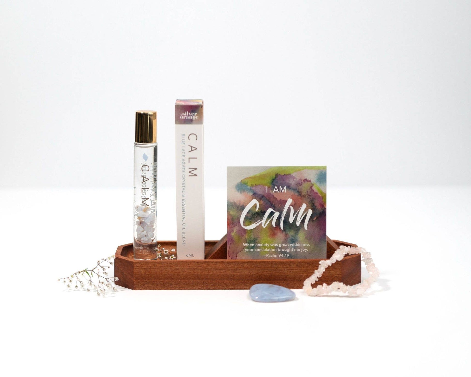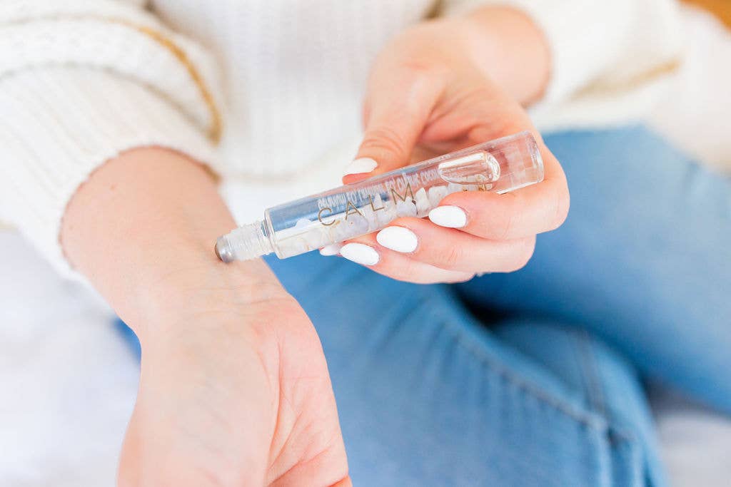 Find peace and ease with our CALM Crystal Roller. This soothing blend features genuine blue lace agate crystals combined with gentle ylang ylang, geranium, and lavender essential oils. Use as a calming aromatherapy roller—perfect for self-care moments and mindful gifting. • All-natural and free from synthetics or artificial fragrance • Crafted with 100% organic coconut oil • Soft, floral, and calming aroma • Reusable glass bottle with gemstone sparkle • Ideal for wellness boutiques, gift shops & spa retail CALM is part of our Crystal Roller Blend Collection—also available in Beautiful, Brave, Healing, and Loved. Each blend offers a unique scent and intention, designed to support joyful, intentional self-care. ✨ Makes a thoughtful gift for new moms, busy professionals & anyone needing relaxation ✨ Great for spa favors, self-care kits & affirmation gift sets ✨ Packaged for gifting with a clean, minimalist aesthetic Pairs beautifully with Calm Affirmation Gems and magnets for display.